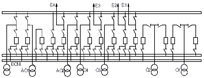 Рис. 19. Схема с двумя рабочими и обходной системой шин