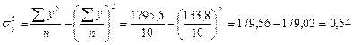 Висновок: із збільшенням обсягу основних фондів на 1 млн грн. випуск продукції збільшується у другій групі порівняно з першою на 0,434 млн грн; в третій групі порівняно з другою – на 0,27 млн грн. Продовженням методу аналітичного групування є дисперсійний аналіз, який досліджує механізм взаємодії факторної і результативної ознак і дає кількісну оцінку тісноти зв’язку між ними. Для обчислення загальної дисперсії за індивідуальними даними доповнимо вихідні дані допоміжними розрахунковими даними: