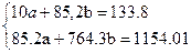 підставляємо значення b у перше рівняння, одержимо: а = 10,2694
