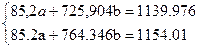 віднімаємо із другого рівняння перше і одержуємо: 38,436b=14,034 звідси b=0,3651
