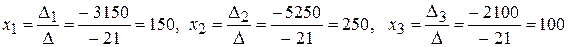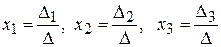 Підставивши знайдені значення визначників у формули Крамера, отримаємо
