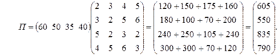 Розв'язання. Очевидно, що витрати П сировини кожного типу можна обчислити, користуючись формулою
