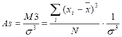 Величина As может изменяться от –1 до +1 (для одновершинных распределений). Чем ближе по модулю As к 1, тем асимметрия существеннее. 2. Наиболее точным и распространенным является показатель, основанный на определении центрального момента третьего порядка – М 3: