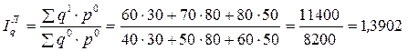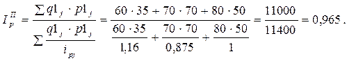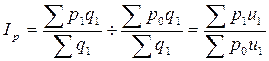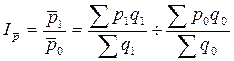 Агрегатный индекс цен (индекс качественного показателя) строится как индекс Пааше по текущим значениям физического объема (q1):