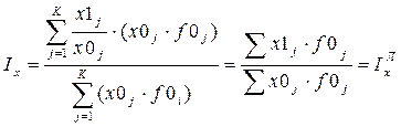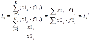 Сводный индекс результативного показателя представляет собой отношение суммы результативных показателей текущего периода (объекта) к сумме результативных показателей базисного периода (объекта):