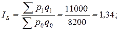 Например, отношение стоимости продукции отчетного (текущего) периода S1=q1·p1 к стоимости продукции базисного периода S0=q0·p0 представляет собой сводный индекс стоимости продукции или товарооборота: