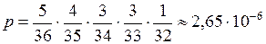 Приклад. Знайти ймовірність найбільшого виграшу в спортлото 5 з 36. Розв'язання. Найбільший виграш буде в тому випадку, коли будуть угадані усі 5 номерів з 36. ймовірність угадати перший номер дорівнює 5/36, ймовірність угадати другий номер, при умові, що перший угаданий, дорівнює 4/35 і т.д. Тому за теоремою 3 отримуємо шукану ймовірність