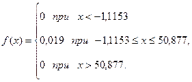Розв′яжемо останню систему, знайдемо a=-1,1153, b=50.877, звідки 1/(b-a)=0,019. Отже, теоретичний розподіл має рівномірну густину
