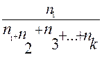 Сн = m / Em ∙ V, де т - маса розчиненої речовини; Em - еквівалентна маса; V - об'єм розчину. Еквівалентну концентрацію за останніми рекомендаціями називають молярною концентрацією еквіваленту. Молярна частка – це відношення числа молей одного з компонентів розчину до загального числа молей всіх компонентів. Її виражають в долях одиниці або у відсотках (%). Молярна частка N1 одного компоненту розчину визначається по формулі: N1 = Де n1 – число молів цього компонента в розчині; n2,n3,….nк - число молів інших компонентів. Сума мольних часток всіх компонентів розчину дорівнює 1 або 100%. N1 + N2 +....Nк = 1 Масова частка – це відношення маси розчиненої речовини до маси розчину. Її також виражають в частках одиниці або у відсотках (%).