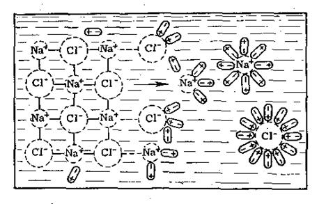 Рис.5. Схема розчинення кристалів солі NaCl у воді