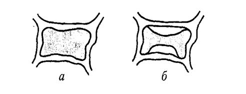 Рис. 8. Клітина рослини в нормальному стані (тургор) (а) і в гіпертонічному розчині (плазмоліз) (б).