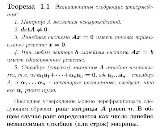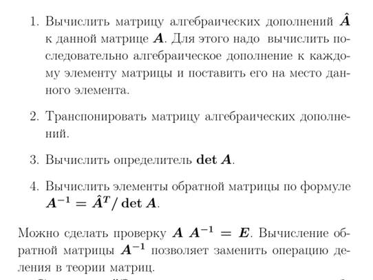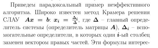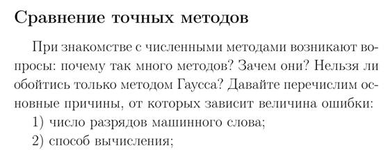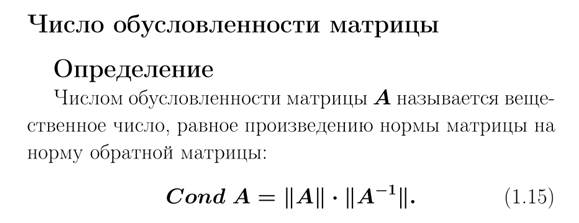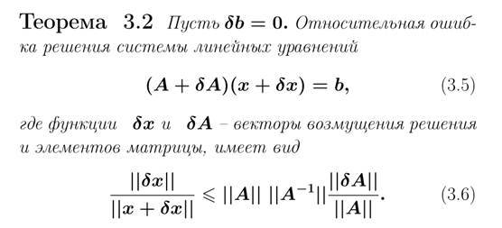 complex <float> z[fact][fact]; for (int i=0;i<n;i++) for (int j=0;j<=n;j++) { z[i][j]=a[i][j]; } // Считаем определитель complex <float> D; if (n==2) D=Det2(a); else D=Det(a,n); if (D.real()==0 && D.imag()==0) printf("Система вырождена и не имеет решений, определитель равен %d",D); else { printf("D: Re=%5.2f Im=%5.2f\n",D.real(),D.imag()); Obratnaya(a,n,D); Gauss(z); cout<<"Вывод решений\n"; for (int i=0;i<n;i++) printf(" x[%d]:Re=%8.3fIm=%8.3f\n",i,x[i].real(),x[i].imag()); cout<<"\n"; //Находим норму Х complex <float> normX(0,0); for (int i=0;i<n;i++) normX=normX+pow(x[i],2); normX=sqrt(normX); complex <float> xst[fact]; for (int i=0;i<n;i++) xst[i]=x[i]; //Находим норму В complex <float> normB(0,0); for (int i=0;i<n;i++) normB=normB+pow(a[i][n],2); normB=sqrt(normB); printf("Количество операций %d\n",N); printf("Введите погрешность "); float re; scanf("%f",&re); complex <float> delta(re,0); printf("delta=%6.3f %6.3f\n",delta.real(),delta.imag()); //Находим норму дельтa b complex <float> delb(0,0); for(int i=0;i<n;i++) delb=delb+pow(delta,2); delb=sqrt(delb); for (int i=0;i<n;i++) a[i][n]=a[i][n]+delta; Gauss(a); cout<<"Вывод решений с погрешностью\n"; for (int i=0;i<n;i++) printf(" x[%d]:Re=%8.3fIm=%8.3f\n",i,x[i].real(),x[i].imag()); cout<<"\n"; printf("Норма матрицы=%5.2f %5.2f\n",normA.real(),normA.imag()); printf("Норма обратной матрицы=%5.2f %5.2f\n",normA1.real(), normA1.imag()); complex <float> condA; condA=normA*normA1; //Число обусловленности printf("Число обусловлености=%5.2f %5.2f\n",condA.real(),condA.imag()); //Находим норму дельта х complex <float> Delx[fact]; complex <float> normDelx(0,0); for (int i=0;i<n;i++) { Delx[i]=x[i]-xst[i]; normDelx=normDelx+pow(Delx[i],2); } normDelx=sqrt(normDelx); printf("Норма дельта x=%8.6f %8.6f\n",normDelx.real(),normDelx.imag()); printf("Норма дельта b=%8.6f %8.6\n",delb.real(),delb.imag()); printf("Норма b=%8.6f %8.6f\n",normB.real(),normB.imag()); printf("Нормa X=%8.6f %8.6f\n",normX.real(),normX.imag()); complex <float> left(0,0); left=normDelx/normX; complex <float> right(0,0); right=condA*delb/normB; printf("Апостериорная ошибка= %8.6f %8.6f\n",left.real(),left.imag()); printf("Априорная ошибка= %8.6f %8.6f\n",right.real(),right.imag()); } getch(); } 2) Метод Крамера. #include "stdafx.h" #include "conio.h" #include "iostream" #include "stdio.h" #include "clocale" #include "math.h" #include "complex" using namespace std; const int fact=10; complex <float> normA(0,0); complex <float> normA1(0,0); complex <float> b[fact]; complex <float> answ[fact]; short int n; int N=0; complex <float> Det2(complex <float> r[fact][fact]) { complex <float> det2=r[0][0]*r[1][1]-r[0][1]*r[1][0]; N++; return det2; } complex <float> Det(complex <float> a[fact][fact],short m) { complex <float> det(0,0); complex <float> s[fact][fact]; complex <float> M; int l,g; for (int i=0;i<m;i++) { l=0; g=0; for (int d=0;d<m;d++) for(int k=0;k<m;k++) if ((d==i)||(k==0)) {} else { s[l][g]=a[d][k]; //Формируем минор по данному элементу N++; if (g<m-2) g++; else { g=0; l++; } N++; } if ((m-1)==2) M=Det2(s); else M=Det(s,m-1); short st=pow(-1.00,(double)i+2); complex <float> q(st,0); det=det+q*a[i][0]*M; } return det; } complex <float> Obratnaya(complex <float> ob[fact][fact], short m, complex <float> D) { complex <float> s[fact][fact]; complex <float> c[fact][fact]; complex <float> Dg; int l,g; if (m==2) { c[0][0]=ob[1][1]; c[0][1]=-ob[0][1]; c[1][0]=-ob[1][0]; c[1][1]=ob[0][0]; } else for (int i=0;i<m;i++) for (int j=0;j<m;j++) { l=0; g=0; for (int d=0;d<m;d++) for(int k=0;k<m;k++) if ((d==i)||(k==j)) {} else { s[l][g]=ob[d][k]; //Формируем минор по данному элементу if (g<m-2) g++; else { g=0; l++; } } if ((m-1)==2) Dg=Det2(s); else Dg=Det(s,m-1); short st=pow(-1.00,(double)i+j+2); complex <float> q(st,0); c[j][i]=q*Dg; //Записываем посчитанный элемент в транспонированную матрицу } for (int i=0;i<m;i++) for (int j=0;j<m;j++) c[i][j]=c[i][j]/D; //Делим каждый элемент транспонированной матрицы на определитель for (int i=0;i<m;i++) for (int j=0;j<m;j++) normA1=normA1+pow(c[i][j],2); normA1=sqrt(normA1); //Вычисляем норму обратной матрицы return c[fact][fact]; } complex <float> Kramer(complex <float> a[fact][fact],complex <float> b[fact],complex <float> D) { complex <float> detxy[fact][fact]; for (int i=0;i<n;i++) for (int j=0;j<n;j++) detxy[i][j]=a[i][j]; //Формируем матрицу для подсчета определителя каждой переменной N++; for (int j=0;j<n;j++) { for (int i=0;i<n;i++) { detxy[i][j]=b[i]; //Замещаем один столбец матрицы на свободные члены N++; } if (n==2) answ[j]=Det2(detxy)/D; else answ[j]=Det(detxy,n)/D; // Находим значения переменных N++; N++; for (int i=0;i<n;i++) for(int q=0;q<n;q++) detxy[i][j]=a[i][j]; //Возвращаем матрице значение исходной матрицы } return answ[fact]; } void main() { setlocale(LC_CTYPE,""); complex <float> a[fact][fact]; puts("Введите размерность матрицы <=10 "); cin>>n; float re,im; for (int i=0;i<n;i++) { cout<<"Помните, что в строке "<<n<<" элемента(ов)\n"; cout<<"Введите "<<i+1<<"-ю строку матрицы\n"; for (int j=0;j<n;j++) { printf("a[%d][%d]:",i,j); printf(" Real="); scanf("%f",&re); printf("Imagine="); scanf("%f",&im); complex <float> q(re,im); a[i][j]=q; } } cout<<"Введ