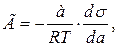 де а – рівноважна активність речовини в об'ємі розчину. У розведених розчинах можна вважати а ≈ с, де с – рівноважна концентрація речовини, тоді дане рівняння застосовують у менш строгому записі