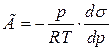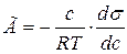 де σ0 і σ – поверхневий натяг розчинника і розчину відповідно, с – концентрація розчину ПАР, а і b – емпіричні сталі. Причому значення а мало залежить від природи ПАР і є єдиним для всього гомологічного ряду, a b називається питомою капілярною сталою, яка має певне значення для кожного члена гомологічного ряду. Рівняння Шишковського застосовують для обчислення поверхневого натягу жирних кислот (або інших ПАР) з невеликим числом атомів вуглецю (до С8). За допомогою рівняння Шишковського можна перейти від рівняння Гіббса до рівняння Ленгмюра. Якщо продиференціювати рівняння Шишковського за концентрацією: