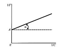 і будують графік залежності 1/Г від 1/С (рис. 1.5). Тангенс кута нахилу прямої α дорівнює 1/Г∞К, а відрізок ОА на осі ординат дорівнює 1/Г∞.