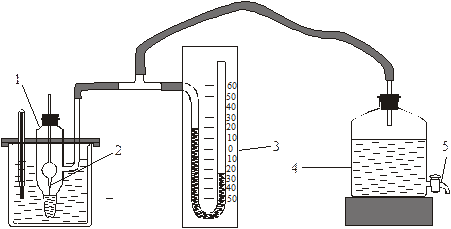 Адсорбція спиртів на межі вода повітря ЛАБОРАТОРНА РОБОТА САМОСТІЙНА РОБОТА НА ЗАНЯТТІ ІІІ. Розв’язати задачі 1. Розрахуйте питому адсорбцію оцтової кислоти на вугіллі (в г/г вугілля), якщо 25,00 см3 0,198 М розчину оцтової кислоти взбовтували із 3 г вугілля і після встановлення адсорбційної рівноваги на його титрування пішло 11,00 см3 0,050 М розчину NаОН. 2. Залежність поверхневого натягу від концентрації валеріанової кислоти при 80 °С описується рівнянням: σ = 62,6∙10-3–17,7∙10-3ln(1+19,72с). Визначте адсорбцію валеріанової кислоти на межі з повітрям і розчином, концентрація якого дорівнює 0,05 кмоль/м3. 3. Для водного розчину пропілового спирту знайдено такізначення констант рівняння Шишковського (при 293 К): а = 14,4∙10-3, b = 6,6. Обчислити поверхневий натяг розчину концентрацією 1 кмоль/м3. Поверхневий натяг води σ0 = 72,53∙10-3 Н/м. 1. Корекція вихідного рівня знань та відповіді на запитання викладача. 2. Виконання лабораторної роботи. 3. Проведення розрахунків. 4. Обговорення одержаних результатів, оформлення висновків та протоколу. У даній роботі адсорбцію на межі рідина-газ визначають за ізотермою поверхневого натягу. Вимірювання поверхневого натягу проводять методом максимального тиску бульбашки газу. Суть методу полягає в тому, що вимірюють тиск, який потрібний для виходу бульбашки з капіляра радіусом r, опущеного в досліджувану рідину. Поверхневий натяг визначають за допомогою приладу Ребіндера, схема якого приведена на рис.1.6. Суть методу Ребіндера полягає в наступному: 1) в посудину (1) наливають дистильовану воду, попередньо ретельно промивши капіляр водопровідною, а потім дистильованою водою; 2) посудину закривають корком зі вставленим в неї капіляром (2) – капілярний кінець повинен тільки змочуватись меніском рідини; 3) посудину (1) поміщають в термостат і з'єднують з манометром (3) та аспіратором (4);
