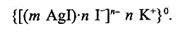 Саме теорія ПЕШ лежить в основі міцелярної будови колоїдних частинок, яка розглядалася у розд. 2 (рис. 2.4). Розгляд будови міцел показав, що ядро набуває заряду завдяки адсорбції з розчину певних йонів (за правилом Панета – Фаянса), які називають потенціалвизначальними. До поверхні зарядженого ядра електростатичними силами притягаються з розчину йони протилежного знаку – протийони, які розміщені в адсорбційному та дифузному шарах. Таким чином, на поверхні твердої фази виникає подвійний електричний шар (ПЕШ), який складається з ядра і протийонів щільного адсорбційного (внутрішня обкладинка ПЕШ) та нещільного дифузного (зовнішня обкладинка ПЕШ) шарів. ПЕШ слід розглядати як єдину електронейтральну систему, в якій заряд твердої поверхні дорівнює сумарному заряду протийонів. Незалежно від механізму утворення ПЕШ, на межі поділу твердої та рідкої фаз виникають певні електричні потенціали. Потенціалвизначальні йони (ПВЙ), які фіксовані на твердій поверхні, створюють поверхневий (електротермодинамічний) φs-потенціал, який характеризує заряд ядра міцели. Його знак збігається зі знаком заряду ПВЙ. На величину φs -потенціалу впливають такі чинники: природа ядра і ПВЙ та концентрація останніх на твердій поверхні. Якщо ПЕШ утворюється внаслідок йонізації твердої речовини або адсорбції йонів, то електричний потенціал визначається активністю цих йонів у розчині, тому що частинка діє як оборотний електрод відносно них. У цьому випадку φs-потенціал можна виразити рівнянням Нернста: