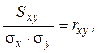 Если сумма произведений моментов велика и положительна, то х и у связаны прямой зависимостью; если сумма велика и отрицательна, то х и у сильно связаны обратной зависимостью; наконец, в случае отсутствия связи между x и у сумма произведений моментов близка к нулю. Для того чтобы статистика не зависела от объема выборки, берется не сумма произведений моментов, а среднее значение. Однако деление производится не на объем выборки, а на число степеней свободы n - 1. Величина Во многих задачах естественных и технических наук ковариация является вполне удовлетворительной мерой связи. Ее недостатком является то, что диапазон ее значений не фиксирован, т. е. она может варьировать в неопределенных пределах. Для того чтобы стандартизировать меру связи, необходимо избавить ковариацию от влияния стандартных отклонений. Для этого надо разделить Sxy на s x и s y: