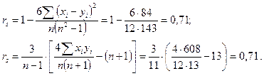 В зависимости от выбора формулы можно использовать столбцы 1 ¸ 4 либо 1, 2, 5. Если в рядах переменных (или хотя бы в одном из них) имеются связанные (повторяющиеся) ранги, то следует пользоваться формулой (8.7) с соответствующей поправкой на связанные ранги: