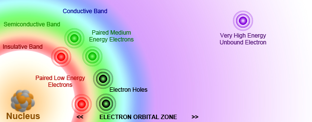Fig. 1.2. Electron orbital zone. 1) Does the information depicted in the diagram have any connection with our previous lessons? 2) How do you think it works? 2. With your group, read the text, divide it into parts and entitle them. Come up with the headline. Answer the questions below. To understand how semiconductors work, you must first understand a little about how electrons are organized in an atom. The electrons in an isolated atom are organized in energy levels. The outermost level is called the valence level. The electrons in this level are the ones, known as valence electrons that form bonds with neighboring atoms. Such bonds are called covalent bonds. If all the neighboring atoms are of the same type, it's possible for all the valence electrons to bind with valence electrons from other atoms. When that happens, the atoms arrange themselves into structures called crystals. Semiconductors are made out of such crystals, usually silicon crystals. Atoms within a crystal have a marked effect upon each other. The forces that bind these atoms together greatly modify the behavior of the other electrons. One consequence of this close proximity of atoms is to cause the individual energy levels of an atom to break up and form bands of energy. If for isolated atoms we have energy levels, for big spread molecules, macromolecules, and also crystals we have energy bands. The energy band formed by a series of energy levels containing valence electrons is known as valence band. Electrons in this band are more tightly bound to the individual atom than the electrons in the conduction band. However, the electrons in the valence band can still be moved to the conduction band with the application of energy, usually thermal energy. The upper band in the solid is called the conduction band because electrons in this band are easily removed by the application of external electric fields. These electrons are free enough to move and thereby carry an electric current. The energy difference between a valence band and a conduction band is called the forbidden band. Electrons are never found in this band, but may travel back and forth through it. Technically, the band gap is the energy it takes to move electrons from the valence band to the conduction band. The width of the forbidden band determines whether a substance is an insulator, semiconductor, or conductor. Questions: 1) How are electrons in an isolated atom organized? 2) How is the outermost energy level in an isolated atom called? 3) What electrons form bonds with neighboring atoms? How are such bonds called? 4) When do atoms arrange themselves into crystals? 5) Are semiconductors made out of isolated atoms? 6) How are atoms arranged in crystals and molecules? 7) What is the difference between a valence band and a conduction band? 8) What is a forbidden band?