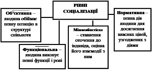 Зокрема, психологічне відчуття безсилля і безпорадності, яке охопило значну частину наших співвітчизників – результат такого устрою суспільної системи, за якої окремій людині відведена роль “маленького гвинтика”. Неодноразово переконавшись у неможливості впливати на ситуацію, людина взагалі відмовляється від пошуку, у неї виробляється ефект “навченої безпосередності”. Рисами її характеру стають слухняність і відсутність будь-якої ініціативи, нездатність приймати самостійні рішення. Часто це не стільки особиста і соціальна ситуація людини, скільки сприйняття нею цієї ситуації. Людина сама уникає життєвих змін, аби не брати на себе відповідальності. З цим ефектом пов’язаний так званий “пролонгований інфантилізм” (тобто дитинство, яке затрималось). Він виявляється у бажанні перекласти відповідальність на іншого. Зворотним боком цих комплексів є так звана “паразитична новація”. Це тип поведінки, заснований на прагненні “перехитрити державу і обдурити систему”, тобто досягти своїх цілей всупереч, а не завдяки системі. Соціологія виходить з розуміння особистості як системи ясно інтегрованих в індивіді соціально значущих рис і соціальних відносин суспільства. Процес засвоєння індивідом елементів культури, соціальних норм і цінностей, на базі яких формуються соціально значущі риси особистості, називають соціалізацією. Її результатом є досягнення людиною певного соціального статусу – позиції у суспільстві, пов’язаної з певними правами і обов’язками. Соціальний статус охоплює різноманітну характеристику становища індивіда: професія, характер праці, матеріальне становище, ділові зв’язки, релігійність тощо. Соціальний статус, у свою чергу, поділяють на приписаний, тобто одержаний людиною від народження (раса, вік, стать, національність), і досягнутий, тобто набутий зусиллями індивіда. Частіше такий статус пов’язаний з посадою на основному місці роботи. Соціальний статус особистості загалом визначає характер її поведінки, або ту соціальну роль, яку вона виконує. Соціальна роль – це відповідний прийнятим нормам спосіб поведінки людей в залежності від їх статусу або положення в суспільстві, системі міжособових відносин. Зрозуміло, що, оскільки людина інтегрована в різні соціальні спільноти, соціальні зв’язки, взаємодіє з різними соціальними інститутами, вона змушена виконувати різні ролі (батько, учений, політичний діяч, президент фан-клубу тощо). Але вони повинні відповідати її статусу і визнаним у суспільстві нормам. Соціальні норми – це правила, що виражають вимогу суспільства, соціальної групи до поведінки особистості, групи в їх взаємовідносинах один з одним, соціальними інститутами, суспільством. Саме соціальні норми формують уявлення людей про необхідне і можливе, прийнятне і недопустиме, схвальне і осудливе. Соціалізація триває від народження до старості і охоплює всі соціальні процеси, завдяки яким індивід засвоює певні знання, норми, цінності, що дозволяють йому функціонувати як повноправному члену суспільства. Зміст соціалізації особистості охоплює засвоєння нею мови соціальної спільності; відповідних способів, методів мислення, властивих культурі особи; форм раціональності і почуттів, прийнятих особою норм, цінностей, традицій, звичаїв, зразків і методів діяльності тощо. Індивід соціа
