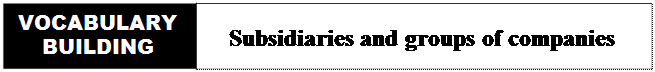 1. дочірня компанія; 2. фіктивна компанія; 3. виробнича компанія; 4. компанія-одноденка; 5. вітчизняна компанія; 6. транснаціональна компанія; 7. компанія, яка займається аферами; 8. компанія, яка має представництво за кордоном; 9. інжинірингова компанія, машинобудівна компані; 10. відкрита / публічна акціонерна компанія; відкрите / публічне акціонерне товариство; 11. зареєстрована компанія (така, що отримала ліцензію на здійснення тих чи інших операцій); 12. компанія з обслуговування; спеціалізована фірма з надання послуг; 13. компанія-постачальник; 14. акціонерна компанія, контрольована однією особою; акціонерна компанія, що складається зх однієї особи; 15. компанія, що володіє контрольними пакетами акцій інших компаній; компанія-засновниця; холдингова компанія; 16. компанія закритого типу (компанія, акціонерний капітал якої контролюється невеликою (біля п’яти людей) групою осіб); 17. компанія відкритого типу (компанія, акціонери якої можуть відчужувати акції, які їм належать, без згоди інших акціонерів); 18. “поштова скринька” (офіційно зареєстрована компанія, яка не має активів і не здійснює операції, а зазвичай створюється для полегшення податкового тиску або для здійснення незаконних угод)? Task 6. a) Read and translate the passage.