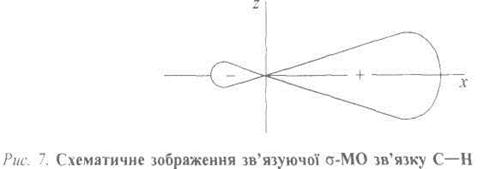 Такі нові орбіталі називаються sр3-гібридизованими атомними орбіталями, оскільки вони виникають унаслідок комбінації однієї s- і трьох р -орбіталей, а процес їх утворення називається гібридизацією. Утворення молекулярних орбіталей (МО). Структура молекули метану зумовлена перекриванням чотирьох sр3-AO атома Карбону з ls-AO чотирьох атомів Гідрогену. Утворюються чотири зв'язуючі σ-МО (рис. 3), які заповнені вісьмома електронами, і чотири вакантні антизв'язуючі σ*-МО.