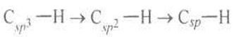 Отже, молекула етину (ацетилену) наче міститься всередині циліндра з негативного заряду. Енергія зв'язку С = С становить 812 кДж∙моль-1, тобто внесок третього зв'язку ще менший, ніж внесок другого під час переходу від простого зв'язку до подвійного. Довжина зв'язку С = С дорівнює 0,121 нм; відстань між атомами Карбону в молекулі етину (ацетилену) ще менша, ніж у молекулі етену (етилену). Спектральні дослідження показали, що відстань С—Н у молекулі етану дорівнює 0,1102 нм, С—Н етену — 0,1086, С—Н етину — 0,106 нм. Зв'язки Карбон—Гідроген в етані, етені, етині є простими зв'язками, але в етані вони утворюються внаслідок перекривання sp3-AO, в етені —, sр 2-AO, в етині — sp-AO. Порівняно з sp3-AO sp2 -орбіталі властиві менший р- і більший s-характер. р-Орбіталь знаходиться на певній відстані від ядра, s-орбіталь розміщена ближче до ядра. У разі збільшення s-характеру гібридизованої орбіталі її ефективний розмір зменшується й одночасно зменшується довжина зв'язку С—Н під час переходів