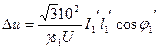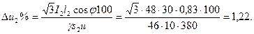При этих допущениях потеря напряжения 1 первом участке сети определяется по выражению