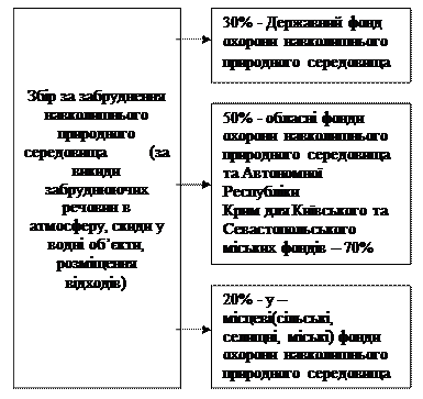 Рис. 8.2.Співвідношення розподілу коштів від збору за забруднення навколишнього природного середовища