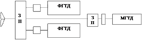 Рисунок 1. Схема КГТЕУ, де не передбачена сумісна робота МД та ФД. 2 тип – забезпечується як сумісна, так і роздільна робота ГТД, які входять до агрегату. Такі схеми називають GOGAG. Такі режими забезпечуються такими конструкторськими рішеннями: