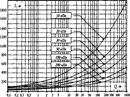 Рис. 2. Графіки залежності надлишкового тиску ∆Р від кількості пропану Q і відстані до центру вибуху L.