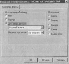 Для введення даних використовувати при роботі 1C:Предприятия таблицю сумісно з діалогом або замість нього. При виклику звіту з'являються і діалог, і таблиця, або тільки таблиця. В деякі елементи такої таблиці, визначені на етапі конфігурації, можна безпосередньо вводити дані. В інших елементах таблиці, неприступних для безпосереднього введення, поміщаються формули, значення які обчислюються після введення даних в доступні осередки. Після введення всіх даних і автоматичного обчислення всіх формул таблиця стає підсумковою таблицею звіту. У списку, розташованому поряд з перемикачем в групі «Використовувати таблицю», для режиму «Для введення даних» можна вибрати одну з пов'язаних із звітом таблиць. Положення. Розташування таблиці щодо діалогової форми регулюється перемикачем «Положення» для режимів «Порожню» і «Для введення даних». При виборі значення «У все вікно» табличний документ займатиме вікно повністю, і діалогова форма відображатися не буде (для режиму «Порожнію», зрозуміло, це значення вибирати не має сенсу). Відносне положення визначається тільки для звіту, викликаного в 1С: Підприємстві; в Конфігуруючий редагування таблиці і діалогу відбуватиметься в різних закладках вікна редагування форми звіту. Редагування форми об'єкту метаданих Для редагування компонентів, створюючи візуальну форму об'єкту метаданих, використовуються три спеціальні редактори. Редактор діалогів дозволяє створити екранне представлення елементу даних у вигляді стандартного Windows-діалогу. В діалозі конкретний елемент даних можна проглядати і редагувати. Табличний редактор служить для розробки опису друкарської форми елементу даних. Цей опис використовується при формуванні остаточного друкарського представлення елементу даних. Редактор текстів використовується для створення алгоритму на вбудованій мові системи 1С: Підприємство, який зв'язує екранне і друкарське представлення елементу даних. Опис порядку роботи з кожним з цих редакторів приведений у відповідних розділах цього Посібника.
