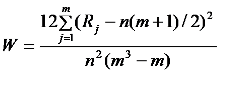 Розміщення об’єктів у порядку зростання величин Мірою узгодженості висновків, зроблених експертами, є коефіцієнт конкордації, який у випадку строгого ранжування розраховується за такою формулою: