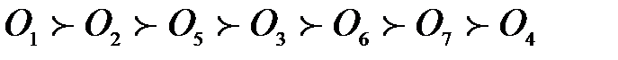 Перший експерт створив дві групи однакових рангів для першого і другого об’єктів та п’ятого і сьомого. Так як до кожної групи входить по два об’єкти, то Другий експерт також створив дві групи однакових рангів (до першої входить два об’єкти – перший і п’ятий, а до другої входить три об’єкти – четвертий, шостий і сьомий). Отже,