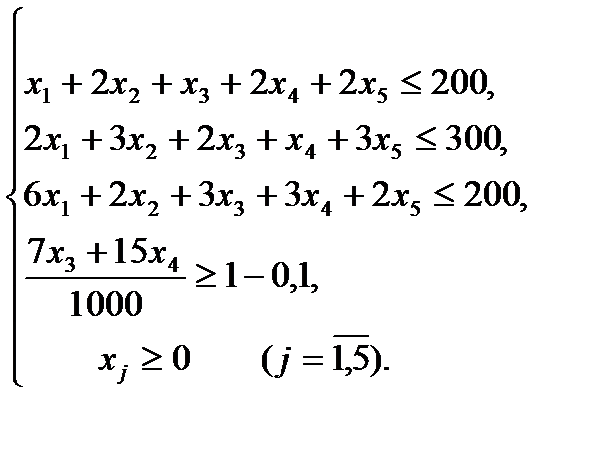 де ► Приклад 5.4. Модель задачі оптимізації доходу від випуску продукції за умови обмеженості ресурсів має вигляд: