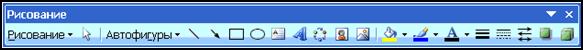 У процесі певних дій (групування об’єктів, зміна порядку розташування, переміщення, зміна розмірів і кута повороту, прив’язка, розташування тексту в об’єктах тощо) створюється малюнок. Основний принцип роботи з графічними об’єктами такий же, що і при роботі з текстом: спочатку слід виділити об’єкт, а потім виконати з ним деякі дії. Група кнопок на панелі інструментів Рисование призначена для зміни параметрів графічних об’єктів – кольору і візерунка заливки, кольору і типу ліній, кольору шрифту, а також для надання об’єкту ефектів тіні або об’єму (мал. 8.5).