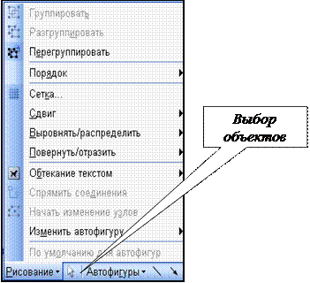 Для малювання або роботи з графічними об’єктами призначена група кнопок Рисование (див. мал.8.4) і Выбор объектов.