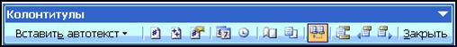 Мал. 8.9. Панель інструментів Колонтитулы