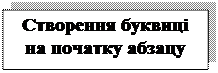 1) виділити першу літеру, слово, сегмент; 2) обрати команду Формат Þ Буквица; 3) у діалоговому вікні Буквица виділити в групі Положение один із параметрів: в Тексте чи На поле; 4) виділити шрифт у списку Шрифт; 5) у полі Высота в строках ввести чи вибрати кількість рядків, на які розповсюджується буквиця (як правило їх три); 6) у полі Расстояние от текста ввести чи вибрати відстань від буквиці до тексту абзацу; 7) натиснути кнопку < ОК >.