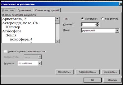 Мал. 9.3. Вкладка Указатель діалогового вікна Оглавление и указатели