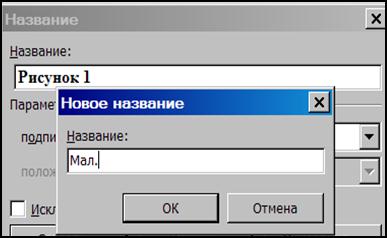 1). Виділити малюнок або встановити курсор уведення тексту під ним; 2). Вибрати такі команди: ВставкаÞСсылкаÞНазвание. З’явиться діалогове вікно Название (див. мал. 9.7); 3). У розкриваючому списку Подпись підібрати мітку. У випадку відсутності необхідної мітки натиснути на кнопку Создать…. З’явиться діалогове вікно Новое название, у якому в текстове поле Название потрібно ввести потрібну мітку та натиснути кнопку ОК (див. мал. 9.8);
