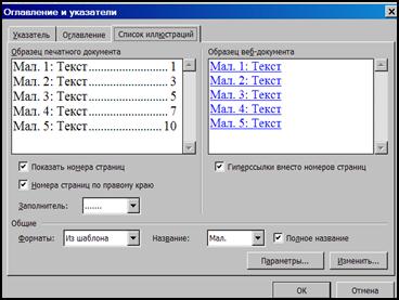 Мал. 9.11. Вкладка Список иллюстраций діалогового вікна Оглавление и указатели