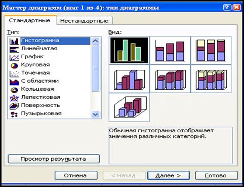 Мал. 11.7. Діалогове вікно Мастер диаграмм (Шаг 1 из 4)