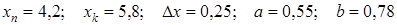 4. Побудувати таблицю значень функції у на заданому відрізку від xn до xk з заданим кроком Δx. Побудувати графік функції.