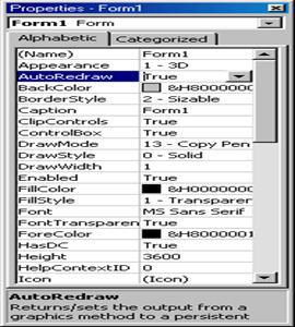 21. Об’єкти управління на формі створюються таким чином: 1 спосіб. Слід вибрати потрібний елемент на панелі елементів управління і клацнути на ньому. У межах форми курсор Миші прийме вигляд хрестика. „Намалювати” на формі об’єкт, утримуючи натиснутою ліву кнопку Миші. 2 спосіб. Подвійним клацанням на значку об’єкта на панелі елементів управління. Об’єкт з’явиться у формі, у місці та з розмірами, визначеними за замовчуванням. Вікно властивостей форми (Properties: Form1) та її об’єктів. Вікно властивостей Properties призначене для відображення і задання властивостей форми, а також розміщених у ній об’єктів. За допомогою вкладок Alphabetic (За алфавітом) і Categorized (По категоріях) властивості об’єкта можна переглянути за абеткою чи по групах (категоріям) відповідно. У даному вікні можна проглянути властивості не тільки вибраного об’єкта: вибрати інші можна зі списку, розміщеного під заголовком вікна. Списки властивостей складаються з двох стовпців: у першому з них вказано назву властивості, у другому - її значення. Для зміни значень передбачені різні способи залежно від різновиду властивості: введення нових значень може відбуватись як у текстовому полі (наприклад, назва форми - у полі Name), вибором зі списку (наприклад, колір підкладки форми - у списку BackColor), а деколи й з діалогового вікна (наприклад, шрифт - Font).