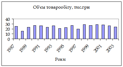 Для побудови діаграми дискретного варіаційного ряду потрібно виділити область клітин А 1: В 7 (клітини, в яких знаходяться дані). Після цього можна викликати Мастер диаграм або вибрати команду, що падає меню Вставка-Диаграмма. На другому кроці вибирають тип діаграми Точечная (можна зі з’єднаними точками, або із окремо розташованими точками) і область побудови діаграми на цьому листі чи на новому листі. Для опису діаграми можна заповнити легенду (наприклад, Об’єм товарообігу, тис.грн.), назва осей: вісь
