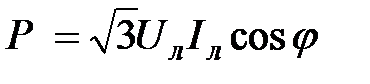 Як правило, застосовуються трипровідні кола трифазного струму без нульового провода. Для трифазного кола замінимо фазні напруги і струми на лінійні значення. Використавши формули (2.108) та (2.109) для з'єднання зіркою та формулу активної потужності (2.79):