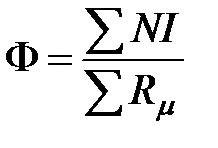 Залежність магнітного потоку Ф від магніторушійної сили NI і магнітного опору
