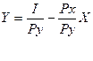 3. Бюджетна лінія. Модель раціонального споживного вибору. Криві байдужості дозволяють виявити переваги споживачів, але не враховують такі фактори впливу на процес споживання, як ціни товарів та дохід споживача. Для того, щоб визначити, який саме набір товарів обере споживач, потрібна додаткова інформація, яка пов’язана з бюджетним обмеженням. Про те який набір товарів є для споживача привабливим визначає бюджетне обмеження, яке показує яку кількість споживчих наборів готовий придбати за визначену кількість грошей. Бюджетна лінія – це лінія, що визначає, яку кількість споживчих наборів може придбати споживач за певну суму грошей у межах свого доходу. І = РХ*Х + РУ *У – рівняння бюджетного обмеження, де